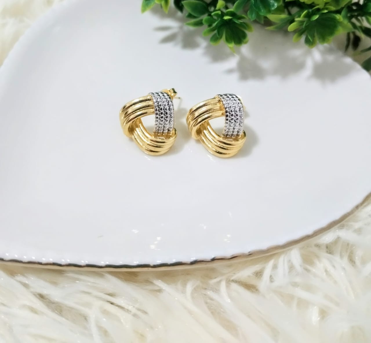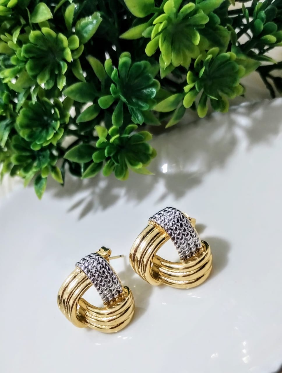 Brinco Trançado Cravejado – Banhado a Ouro 18k